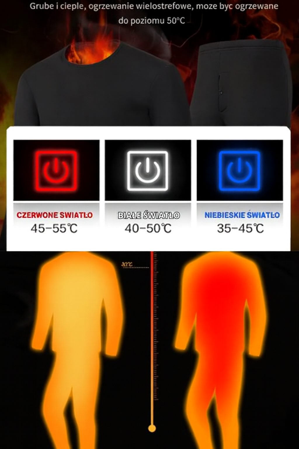 🔴 Czerwony – intensywne grzanie: 45–55°C