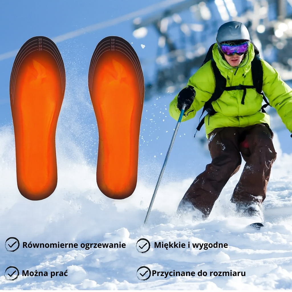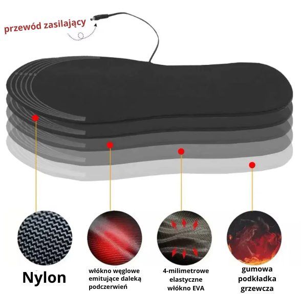 Nasze podgrzewane wkładki zostały zaprojektowane tak, by zapewniać równomierne ogrzewanie całej stopy — od pięty aż po palce. System grzewczy rozmieszczony jest w taki sposób, aby ciepło rozchodziło się delikatnie i stabilnie, gwarantując maksymalny komfort nawet podczas najchłodniejszych dni.