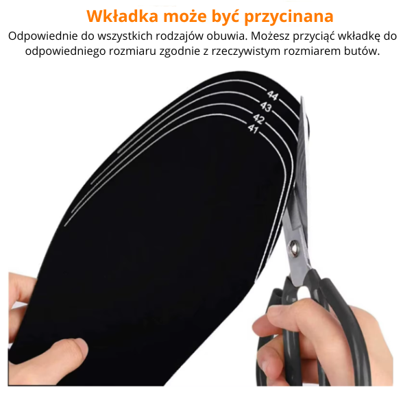 Dodatkowo wkładki można łatwo przyciąć do idealnego rozmiaru — na powierzchni znajdują się specjalne linie prowadzące, które ułatwiają idealne dopasowanie do Twojego obuwia.